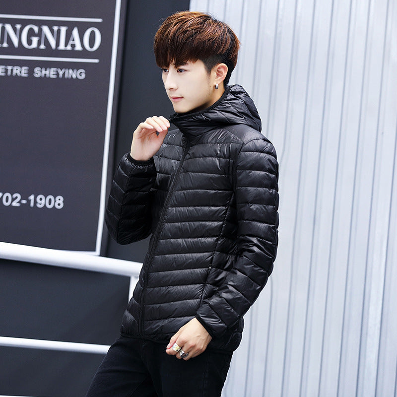 Mens Duck Down Hooded Jacket Winter Ultralight Bubble Coat Puffer Slim Fit